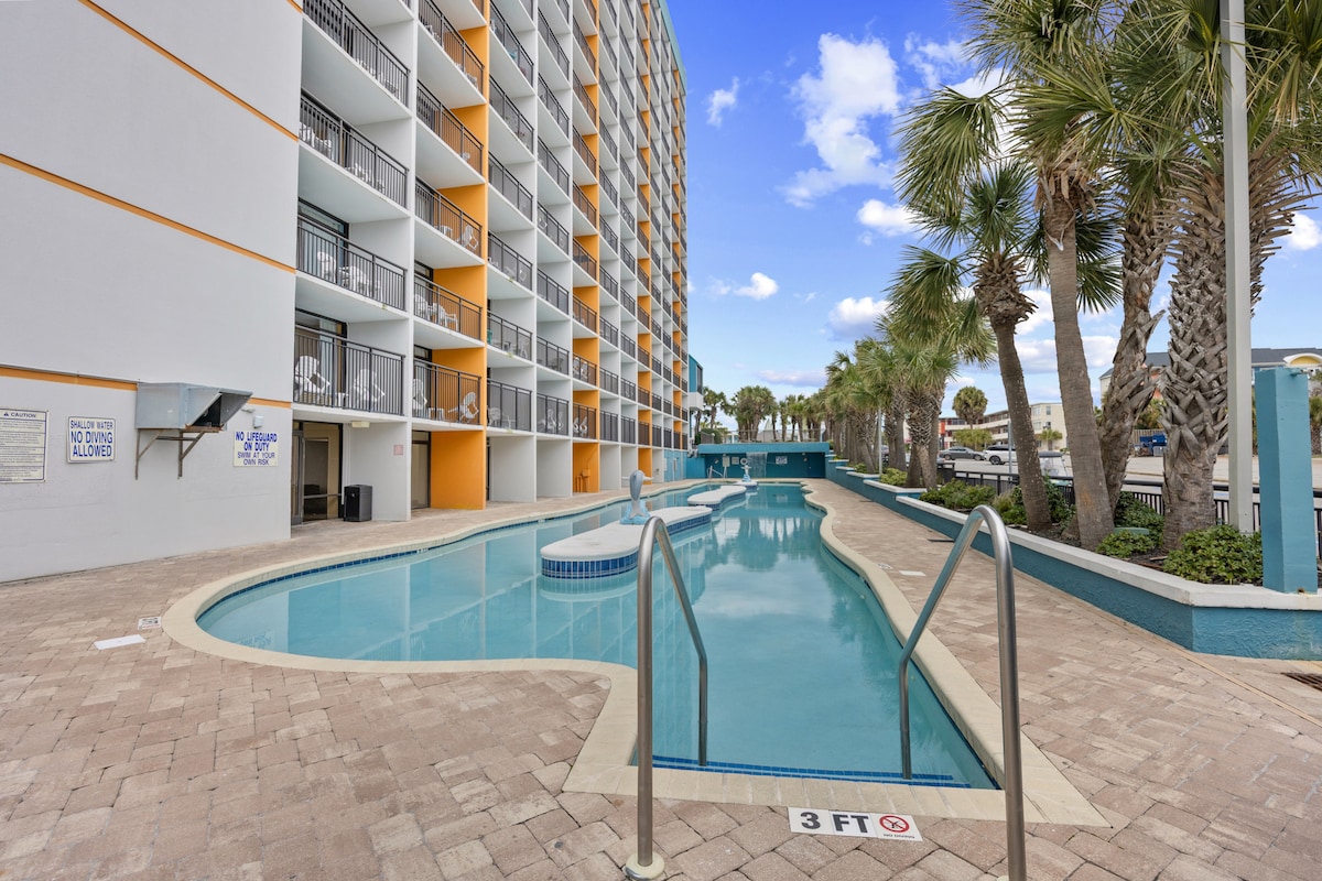 Enjoy being right on the beach while conveniently located at the Landmark Resort. Less than 2 miles from the airport just as close to a lot of the major attractions. Walking distance to grocery shopping and many restaurants as well.